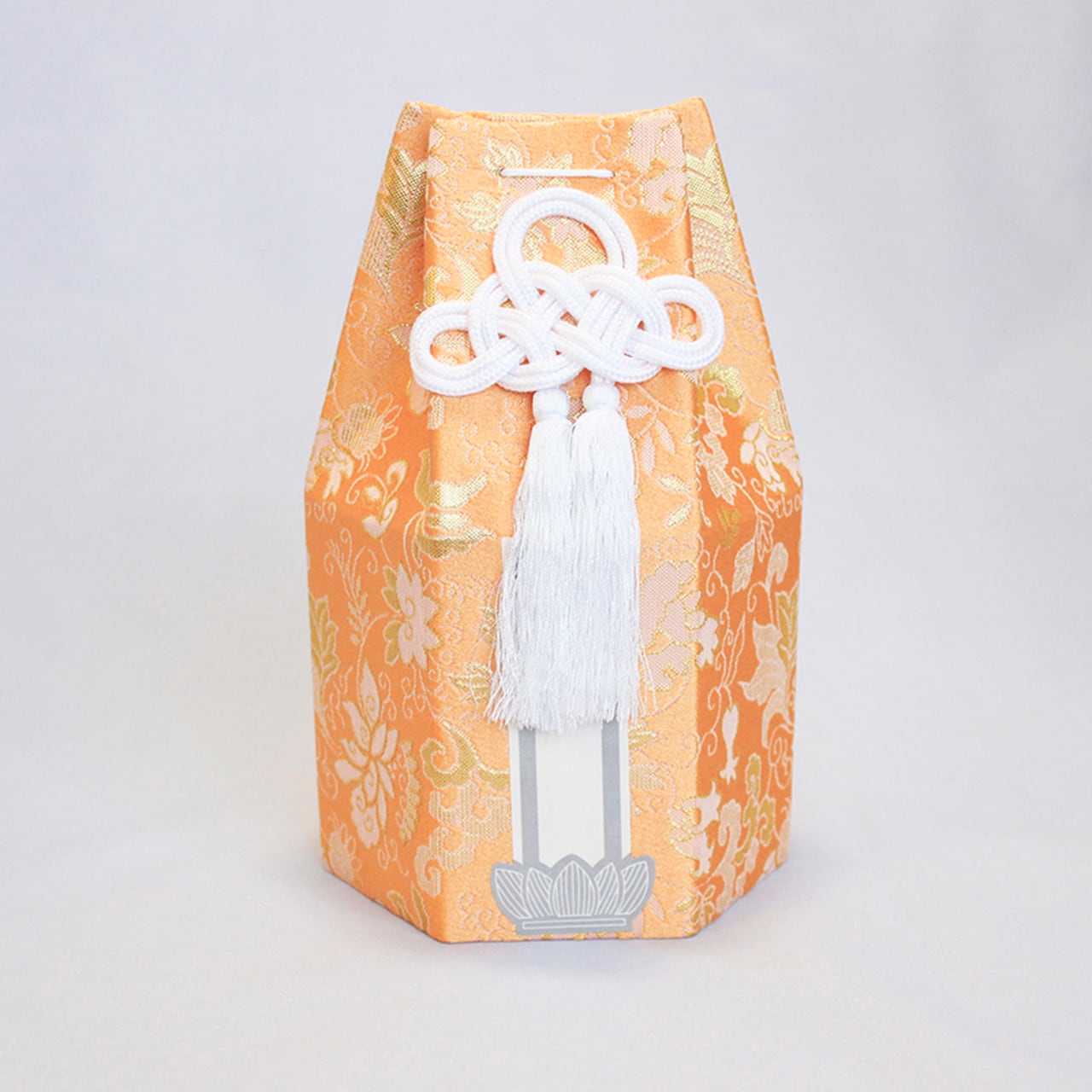 シンプルな白い骨つぼと鮮やかな花柄の覆いのセットです。 グリーン/オレンジがございます。 サイズ(高さ㎝×胴経㎝):14.4×12.5